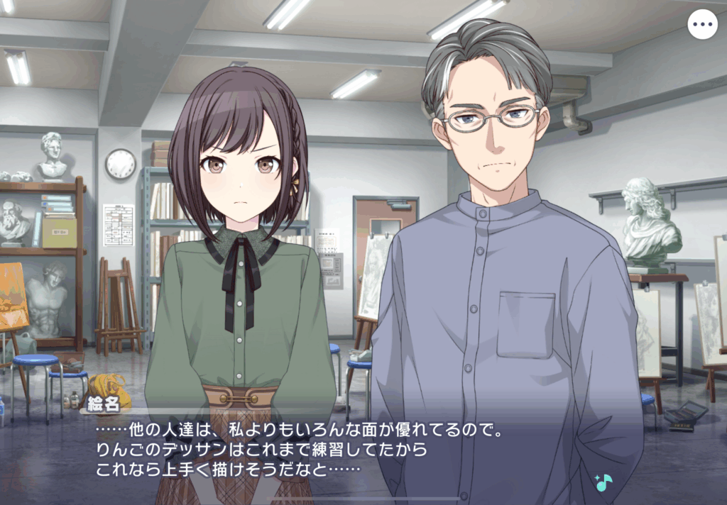 今までは絵の悩みに対して見守ることしかできなかったニーゴメンバーだけど、お題がかなり抽象的だからこそ同じクリエイターとして奏の助言が刺さるのすき。これって技術の先の話なので、そもそも一定の成長はしているということなのではとも思う。そういう表現にこそニーゴの活動が活きてくる気がするが