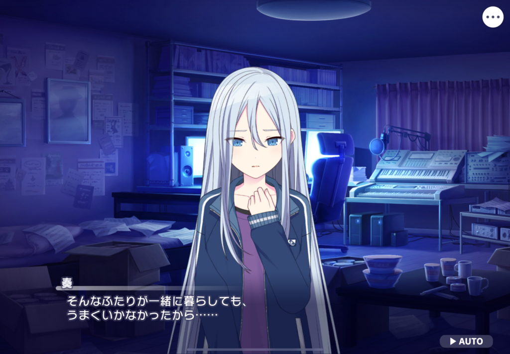 Unreliable Notesで取り組み始めた「まふゆが母親に感じた暖かさ」を落とし込んだ曲の制作に奏が行き詰まったところから始まる。